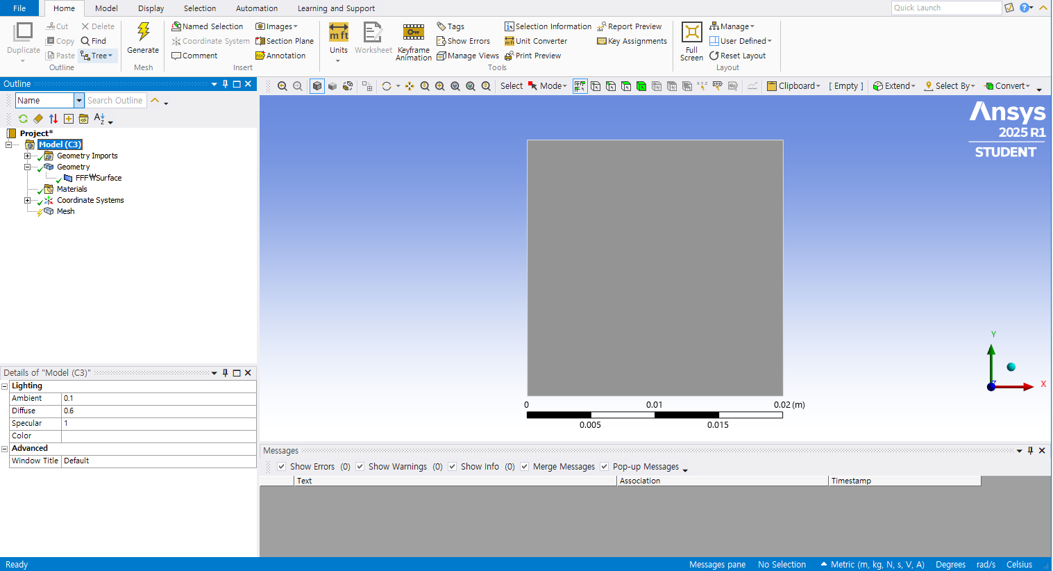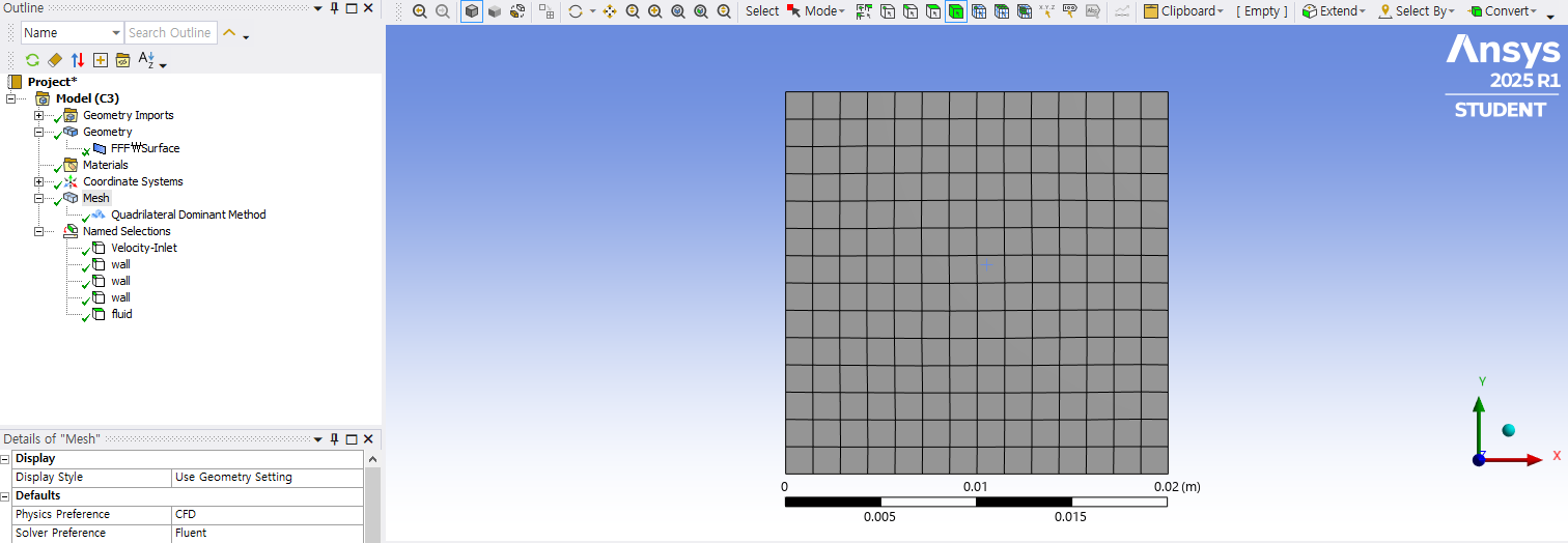 다시 격자 생성해 주고 Export 한 뒤, Fluent로 넘어와서 격자를 다시 Import로 가져왔습니다.