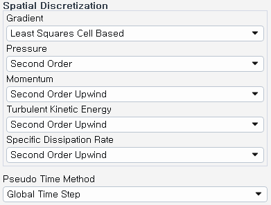 Pressure 부터 Specific Dissipation Rate까진 전부 Second Order Upwind로 설정되어있는데요.